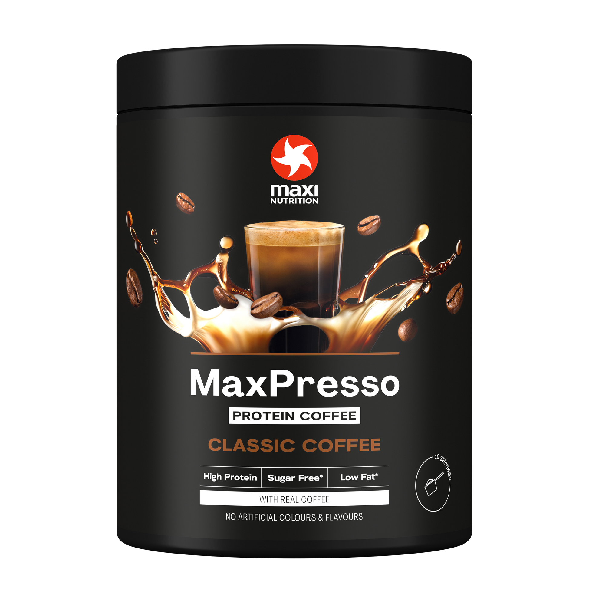 MaxPresso Protein Coffee is as versatile as your coffee order. Just add milk or water, hot or cold, shake it up, and voilà! Smooth, no lumps, and it's low-fat, sugar-free, gluten-free. and free from artificial flavours and colours.